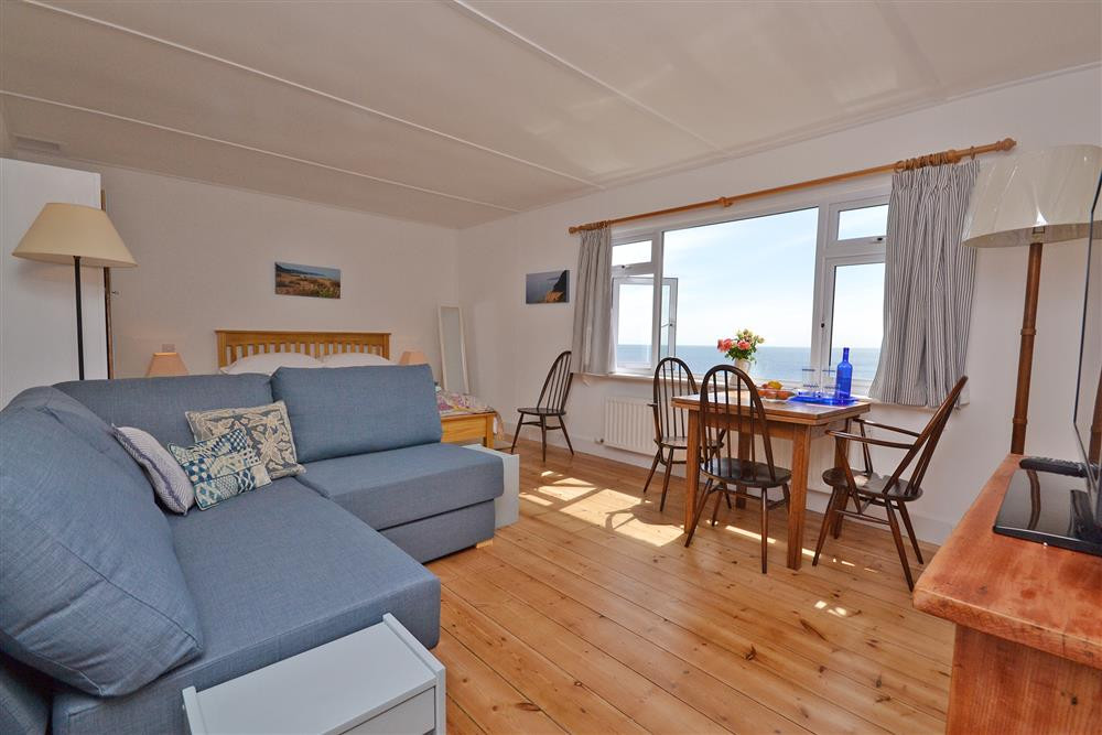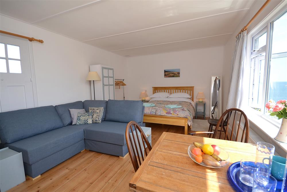 The appropriately named Limpet is all about the location. Set on the cliffs overlooking secluded Cove Beach below, with views down the coast to Start Point it's difficult to imagine a better setting. The Southwest Coast Path passes the door and gives visitors access to miles of beautiful coastline, perfect for dog walking, bird watching or rock pooling. The village of Torcross is a short walk down the hill and has an excellent pub and two cafes, or go down the steps to the beach and along to Beesands, for the Britannia Fish Shack and the Cricket Inn. The brave could take a bracing swim before breakfast! Limpet has everything you will need for 'sea for two', airy in summer and cosy in the winter. The studio/living room has comfortable seating, a dining table by the window to take advantage of the views, and a king-size bed from where the beam of the lighthouse will keep you company and the sound of the sea lull you to sleep. There is a separate, well-equipped kitchen, a bathroom and a sunny garden area where you can relax and enjoy the sea views to the horizon.