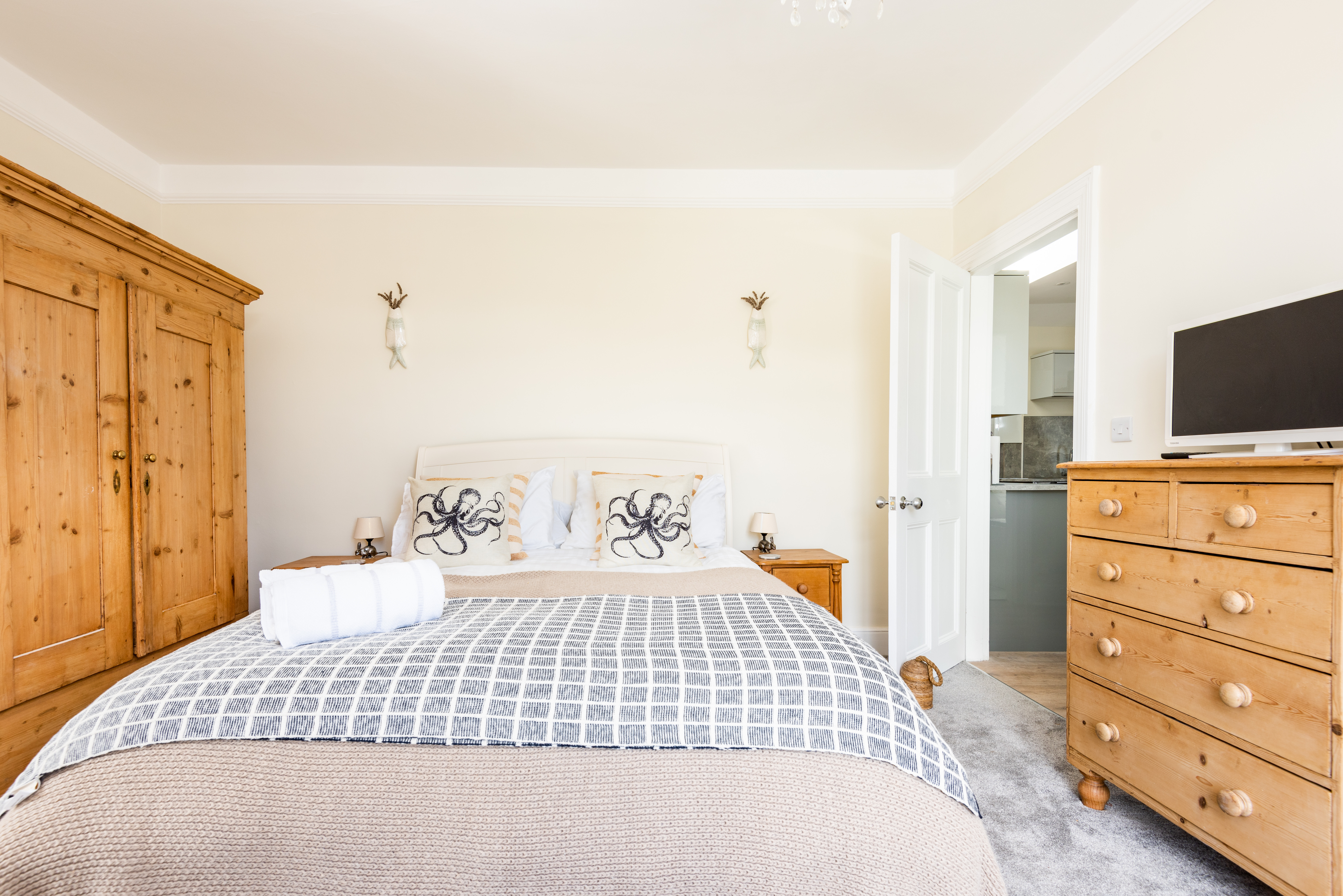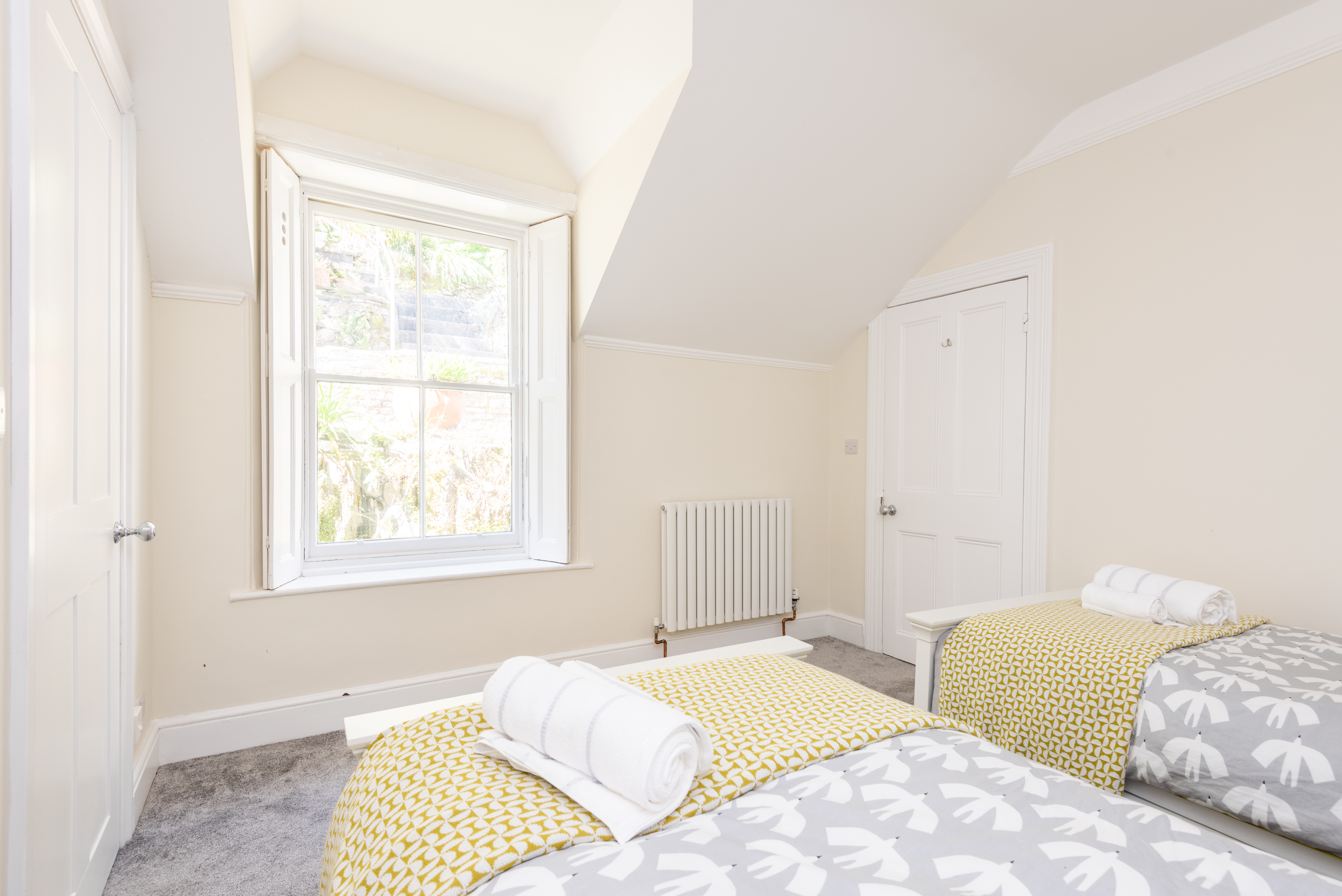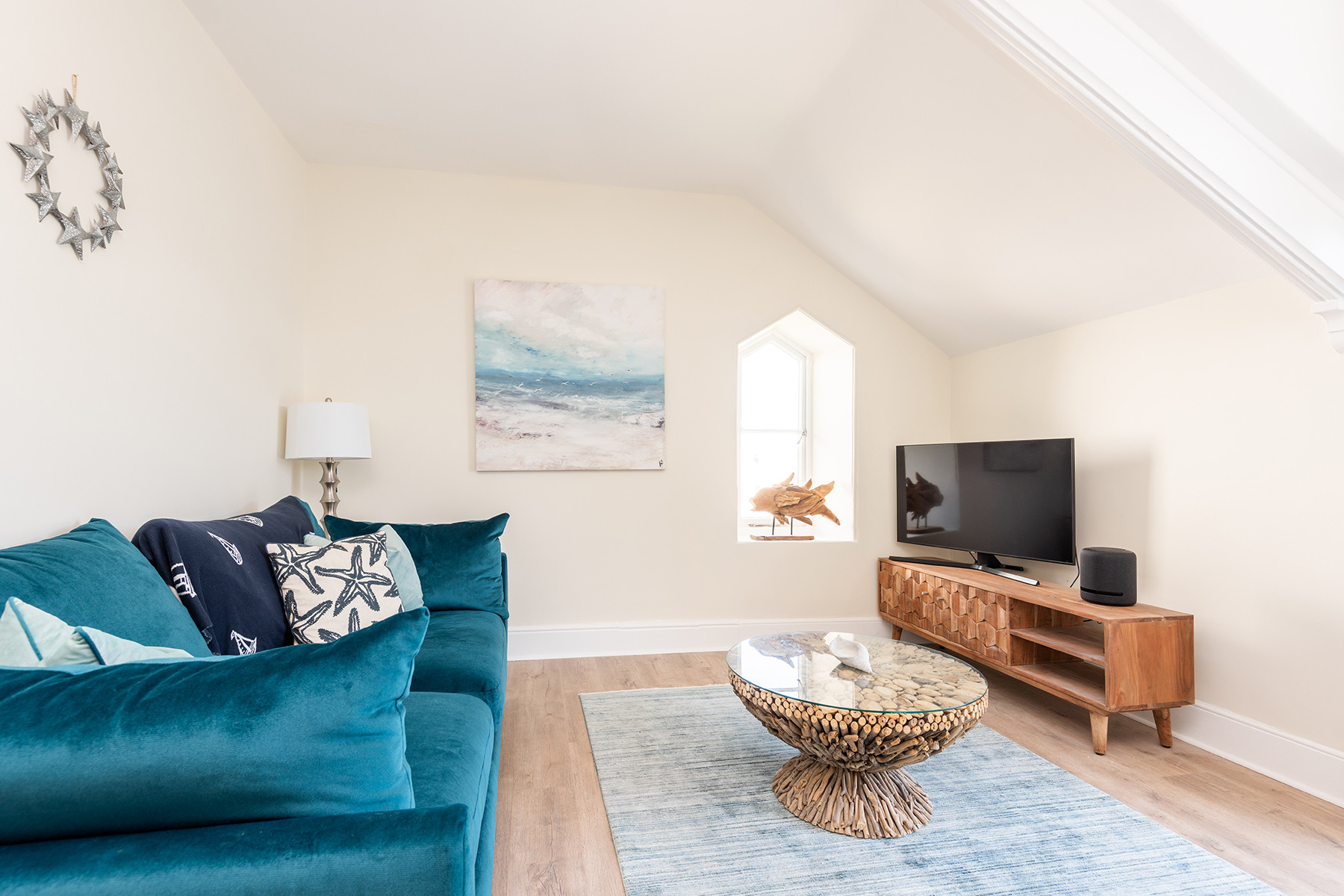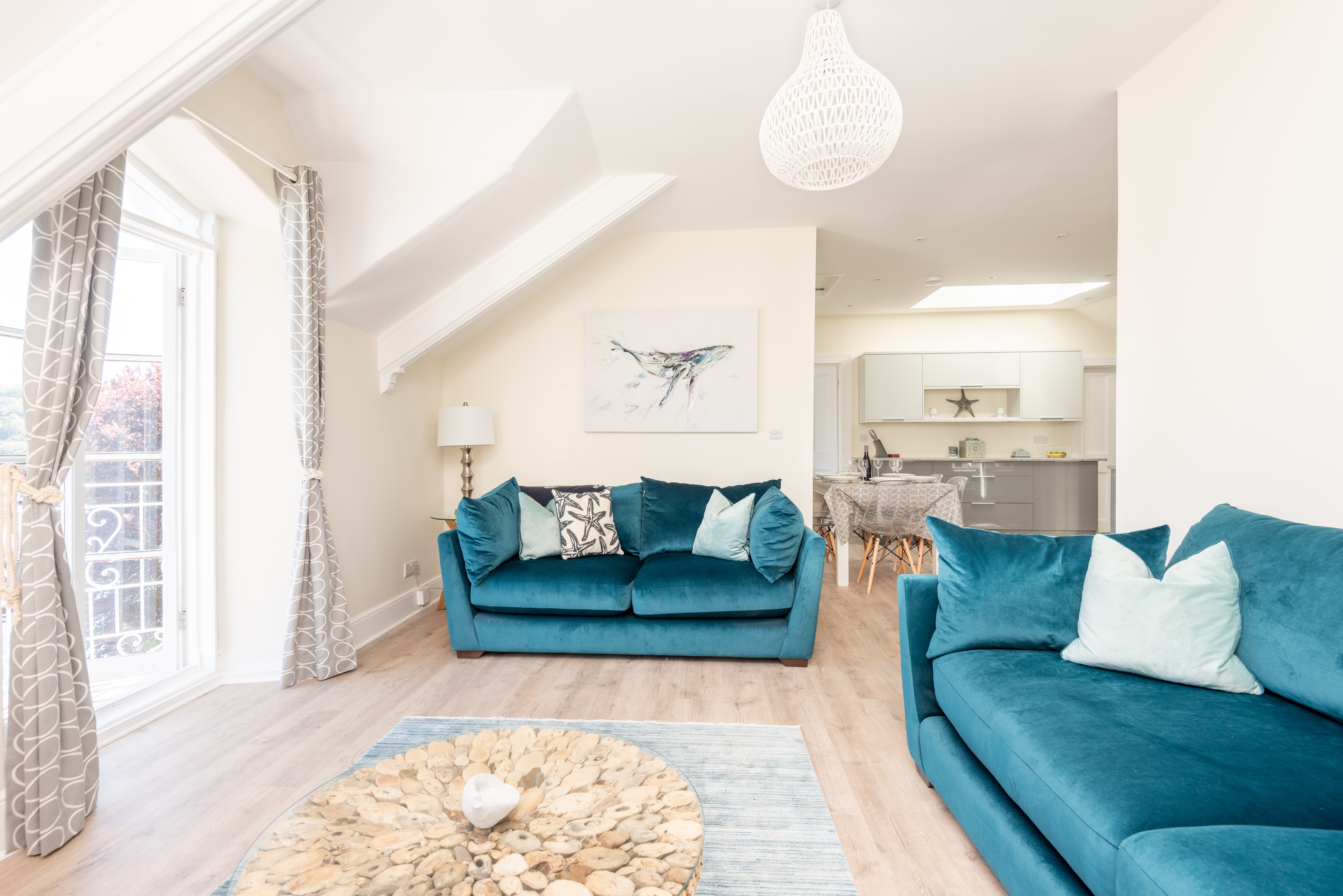 The Holt is an immaculately finished apartment situated on the top floor of an elegant yet grand period property (which may be rented as a 6 bedroom house), ideally located to appreciate the absolute best Dartmouth has to offer. Enjoy the delights of the town’s vibrant centre and riverside embankment which is just over a 10 minute stroll away and offers a wide range of interesting shops, galleries, cafes, restaurants and pubs. Alternatively walk for just a few minutes in the opposite direction and relax in the peaceful Warfleek Creek area which offers its visitors access to a quiet and secluded part of the river, benches on the water’s edge and a short footpath on to the historic Dartmouth castle and its well-run café. The little-known Gallant’s Bower and Sugary Cove’s delightful beach are also within easy walking distance, perfect for a picnic and some stone skimming. After a day out exploring, rest in comfort on the property’s raised patio with views of the Dart Valley or in the property itself which boasts two small balconies with enviable river views and a sweeping outlook across Kingswear, Dartmouth and the Royal Britannia Naval College. The property has been stylishly designed to a good spec and presented with the guest in mind, featuring tasteful and comfortable furnishings, a digital television with Netflix and more, as well as an Amazon Alexa for music streaming.