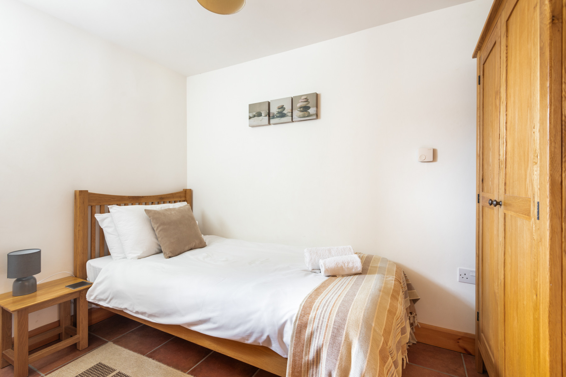 Pear Tree Cottage is one of three holiday cottages recently converted by the owners of this working livestock farm. The farm, which has been in the same family for over 100 years, is located along a private lane in an Area of Outstanding Natural Beauty, on the outskirts of the village of Awliscombe, East Devon. The village is about 3 miles north of the busy market town of Honiton, famous for its antique shops and lace making and offering a good selection of cafes, pubs and restaurants.This attractive stone cottage has been recently refurbished to provide very high quality holiday accommodation. Set in an absolutely wonderful rural location on the edge of the Blackdown Hills, the cottage has been sympathetically restored, retaining much of the character of the original building. The recent renovation means that the cottage benefits from the added comforts of a pristine new bathroom and a convenient shower/wet room as well as a modern fitted kitchen including a dishwasher. The cottage has one double, one twin and one single bedroom. The single bedroom is on the ground floor with a shower/wet room adjacent, making this property a very good option for parties that include someone with limited mobility. The provision of a cosy wood burner and an environmentally friendly under floor heating system make this a great choice for out-of-season breaks too. Outside there is a large, enclosed garden backing onto a small orchard leading to open farmland and woods. Access to the garden is via a gate at the side of the cottage next to the parking area.